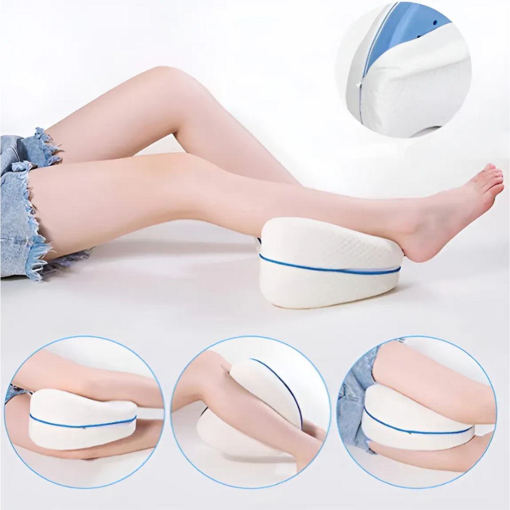 Almohada ortopédica de rodilla con espuma viscoelástica que se adapta a tu cuerpo, proporcionando alineación de cadera y columna vertebral para los que duermen de lado. Alivia el dolor de ciática, las molestias de la rodilla y la tensión de la espalda baja, asegurando una postura natural durante el sueño.