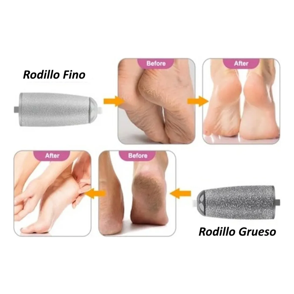 Disfruta de un cuidado personalizado de los pies con dos cabezales de rodillo fáciles de intercambiar, finos para el mantenimiento diario, regular para pieles ásperas y ásperas para callos difíciles, todo impermeable y construido para una limpieza sin esfuerzo.